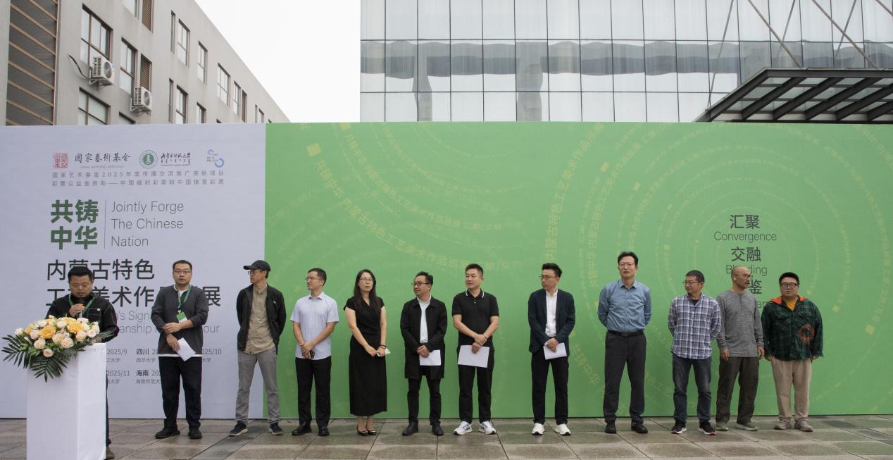 2025年10月9日,国家艺术基金2025年度传播交流推广资助项目——《共铸中华:内蒙古特色工艺美术作品巡展》开幕式(成都站)在西华大学美术与设计学院隆重举行。展览由内蒙古师范大学主办,内蒙古师范大学设计学院、西华大学美术与设计学院(成都站)承办,呼和浩特民族学院 美术与设计学院;内蒙古农业大学 材料科学与艺术设计学院;内蒙古民间文艺家协会;内蒙古文艺评论家协会;内蒙古工艺美术协会;内蒙古工艺美术学会;呼和浩特工艺美术协会。
