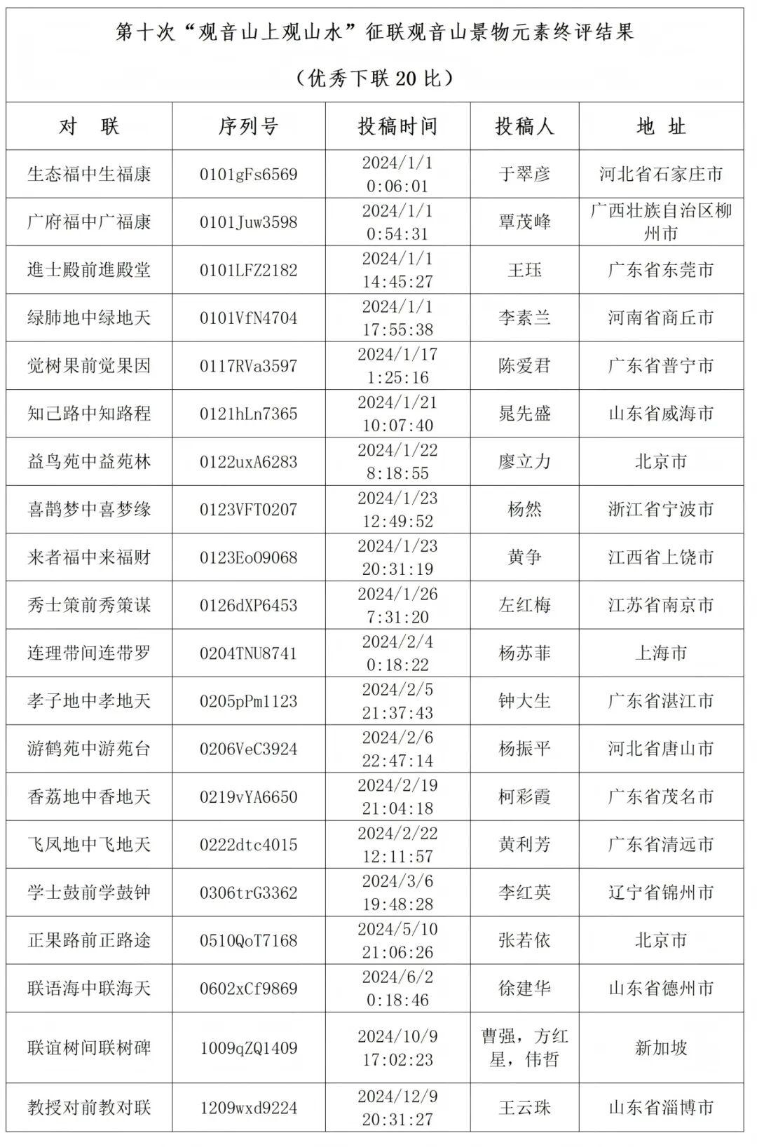 第十次“观音山上观山水”征联活动评审结果公布