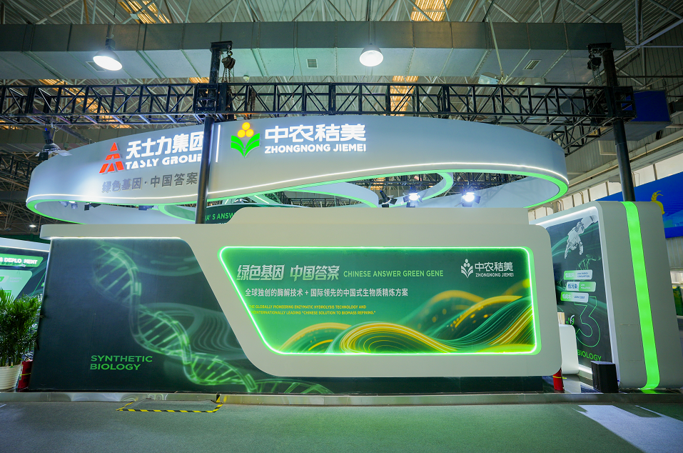 在众多参展企业之中,作为合成生物领域的明星企业,深圳中农秸美科技股份有限公司(以下简称“中农秸美”)携全球领先的秸秆废弃物处理的绿色解决方案亮相农高会。在中农秸美以“绿色、科技”为基调的展厅内,“绿色基因、中国答案,秸秆绿色利用领导者”的醒目标语,凸显了中农秸美的技术独占性及行业地位。