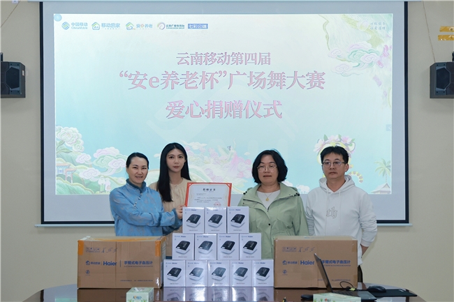 丹桂又飘香,重阳佳节至,10月29日下午,云南移动第四届“安e养老杯”广场舞大赛组委会代表前往昆明市社会福利院,开展爱心捐赠活动。此次活动共捐赠50台爱心血压仪与2台移动智能音箱,以实际行动延伸对老年群体的关怀。