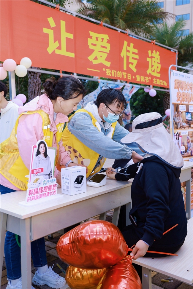捐赠当天正值福利院举行重阳节主题活动,现场可品尝各类美食、享受理发服务、体验制作糖画等,中国移动工作人员也在福利院操场为老人们提供了现场血压测量服务,与他们亲切交流,活动现场暖意融融。昆明市社会福利院副院长寸锦灿介绍道:“福利院每逢节日或重要节气都会举办相关活动,丰富老人们的生活。同时,我们也配备了专业人员对老人们进行定期健康监测,院内建立了清晰的信息化医疗管理系统。”