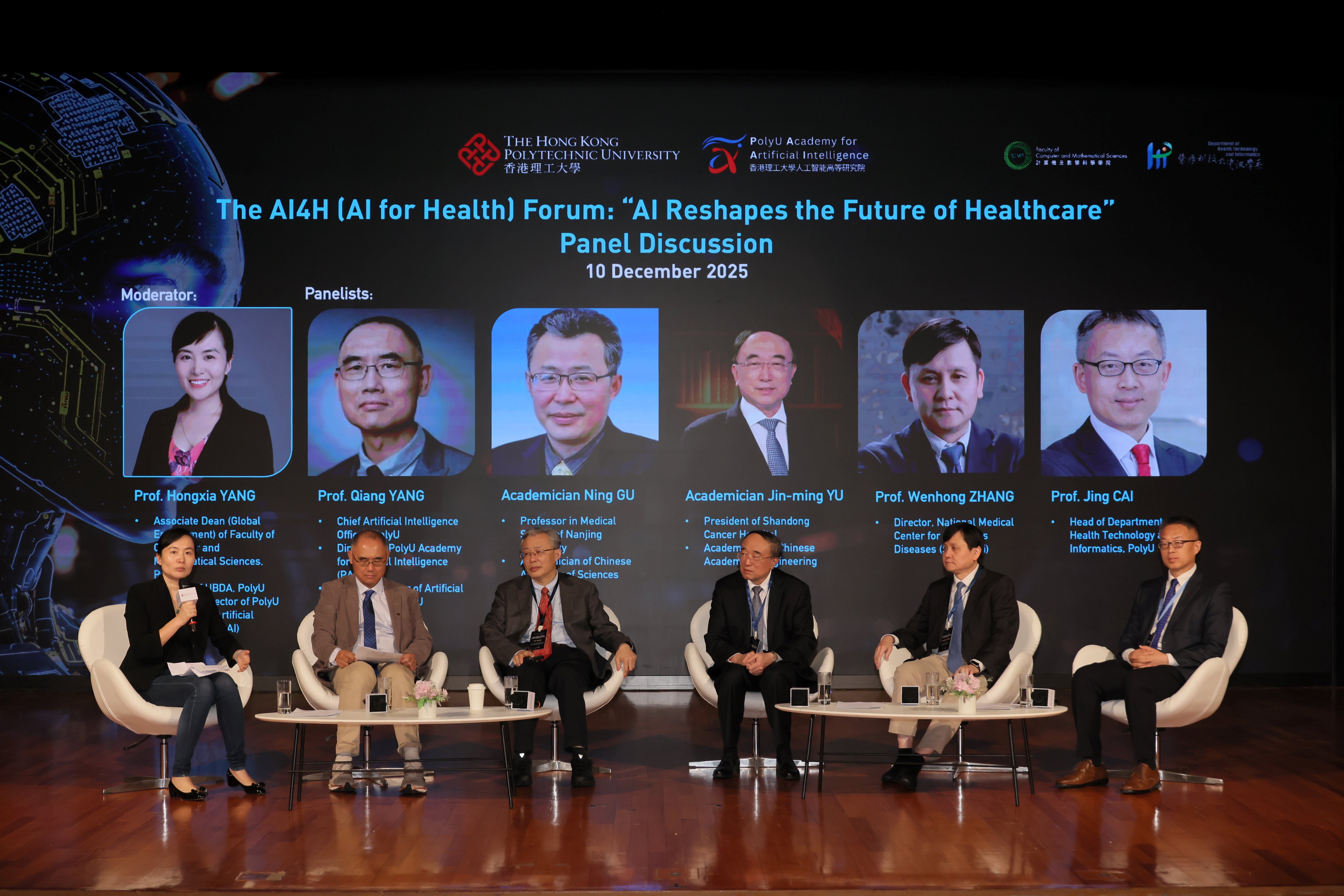 人工智能与健康论坛于成立仪式后举行,杨强教授、杨红霞教授与一众临床专家讨论AI如何重塑医疗健康未来。